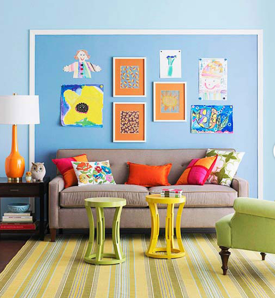4, egy falszakaszt dekorléccel leválaszthatsz, adjál ennek a résznek egy kicsit erősebb színárnyalatot, és tegyél rá különböző keretezett képeket, gyerekrajzokat, remekül egységesíti ez a megoldás a szedett-vedett képeidet is.